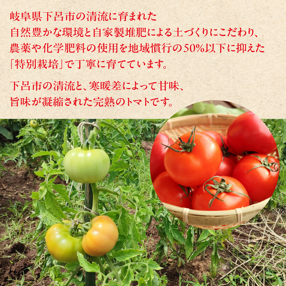 岐阜県下呂市竹原地区の厳しい寒暖差という自然の恵みの中で、じっくりと甘さを凝縮させた甘熟トマトです。